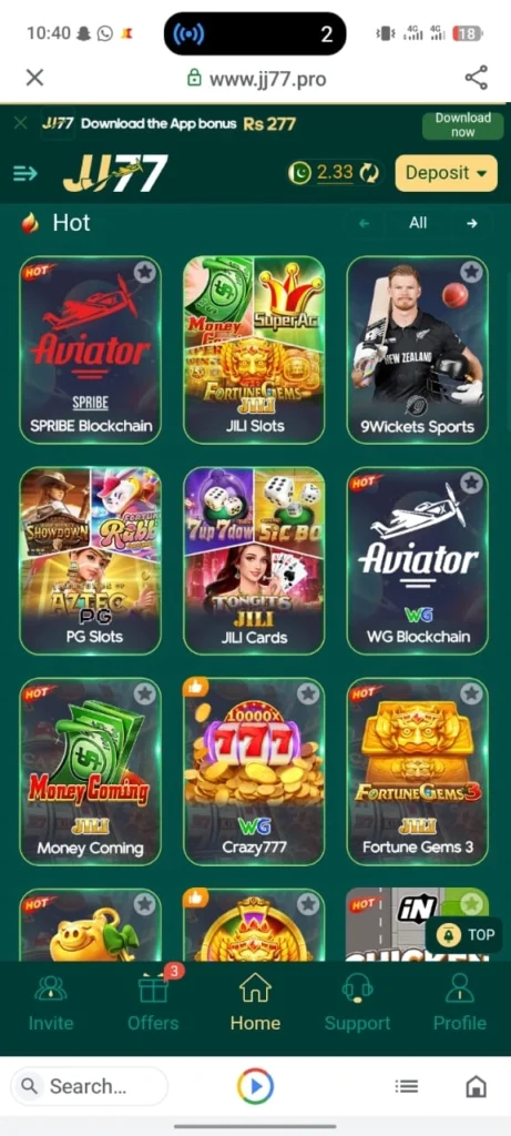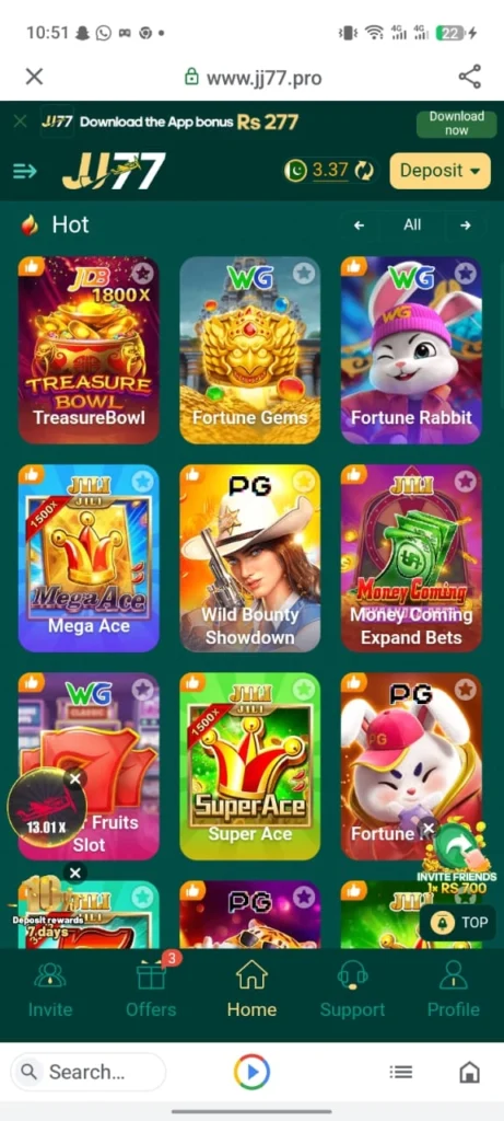 JJ77 is an online betting and casino-style mobile game that allows users to play different games and earn real money. The platform is mainly designed for Android users and is popular in Pakistan due to its smooth performance and simple interface.
